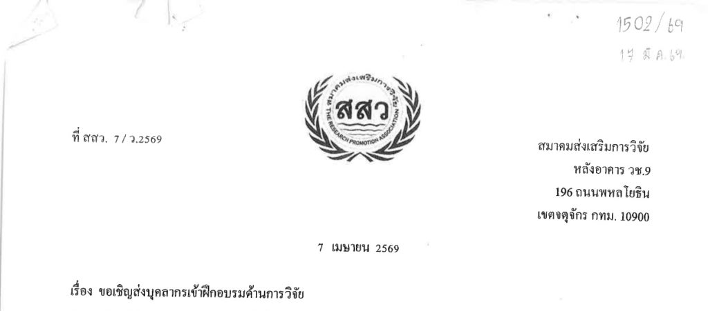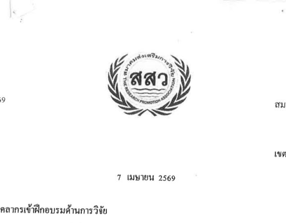 ขอเชิญส่งบุคลากรเข้าฝึกอบรมด้านการวิจัย