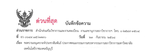 ประกาศคณะกรรมการสรรหากรรมการสภาวิชาการ มหาวิทยาลัยเทคโนโลยีราชมงคลธัญบุรี ฉบับที่ 1/2568