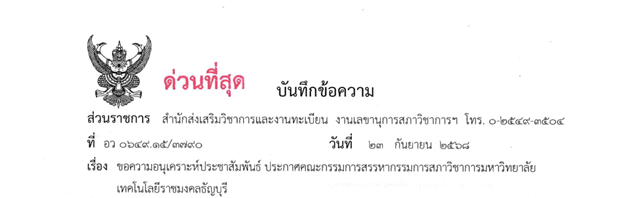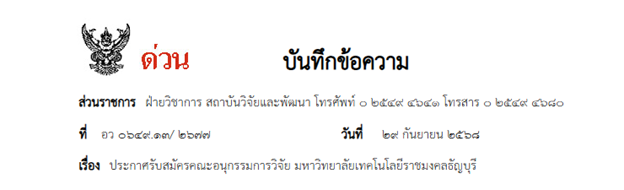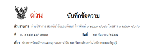 ประกาศรับสมัครคณะอนุกรรมการวิจัย มหาวิทยาลัยเทคโนโลยีราชมงคลธัญบุรี
