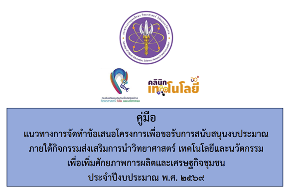 ขอเชิญส่งข้อเสนอโครงการ Project Brief ภายใต้โครงการส่งเสริมการนำวิทยาศาสตร์ เทคโนโลยี และนวัตกรรม เพื่อเพิ่มศักยภาพการผลิต และเศรษฐกิจชุมชน ประจำปีงบประมาณ 2569