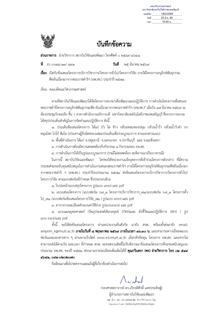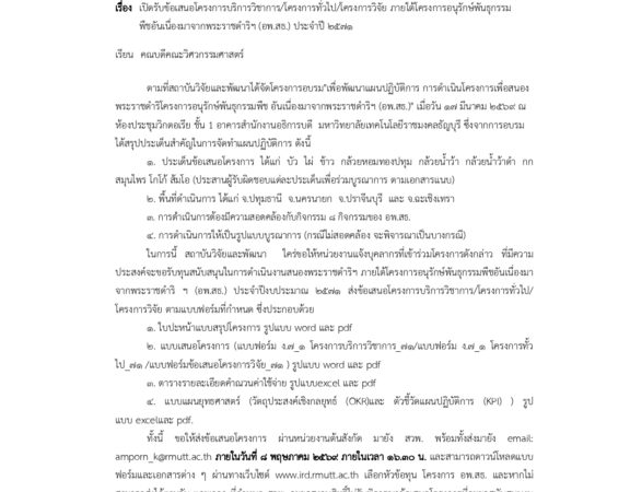 เปิดรับข้อเสนอโครงการบริการวิชาการ/โครงการทั่วไป/โครงการวิจัย ภายใต้โครงการอนุรักษ์พันธุกรรมพืชอันเนื่องมาจากพระราชดำริฯ (อพ.สธ.) ประจำปี ๒๕๗๑