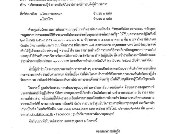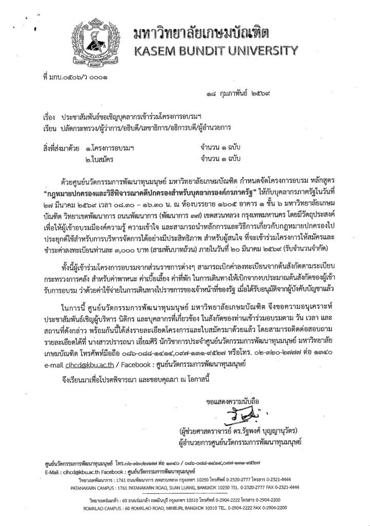 ประชาสัมพันธ์ขอเชิญบุคลากรเข้าร่วมโครงการอบรมฯ