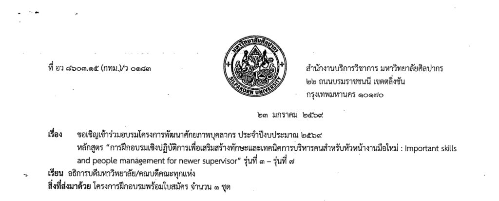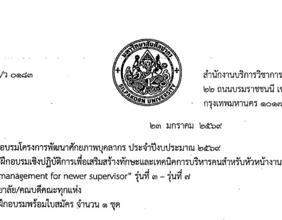 ขอเชิญเข้าร่วมอบรมโครงการพัฒนาศักยภาพบุคลากร ประจำปีงบประมาณ 2569