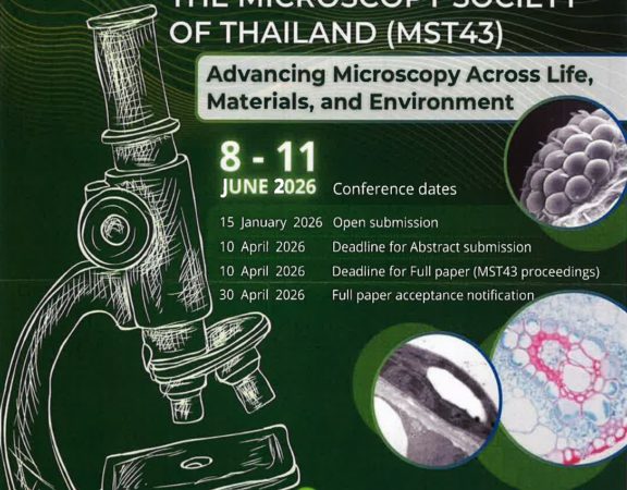 ขอเชิญเข้าร่วมเสนอผลงานและขอความอนุเคราะห์ประชาสัมพันธ์ งานประชุมวิชาการนานาชาติ The 43rd International Conference of the Microscopy Society of Thailand