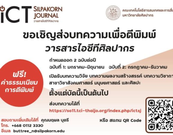 ขอเชิญชวนส่งบทความเพื่อตีพิมพ์และเผยแพร่ในวารสารไอซีทีศิลปากร