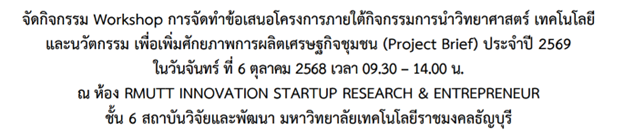 เพื่อเพิ่มศักยภาพการผลิตเศรษฐกิจชุมชน (Project Brief) ประจำปี 2569