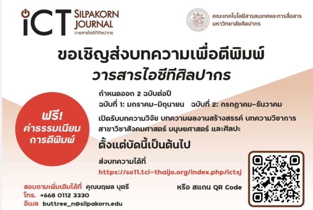 มหาวิทยาลัยศิลปากร-ขอเชิญชวนส่งบทความเพื่อตีพิมพ์และเผยแพร่ในวารสารไอซีทีศิลปากร