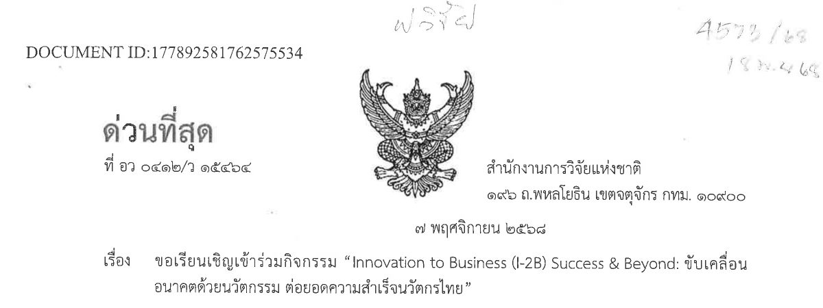 ขอเรียนเชิญเข้าร่วมกิจกรรม “Innovation to Business (I-2B) Success & Beyond