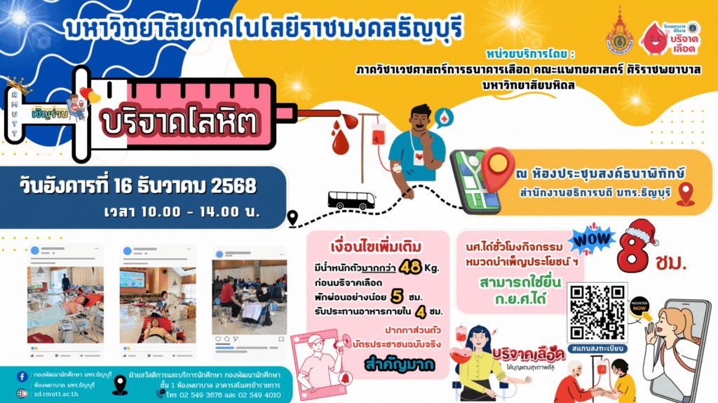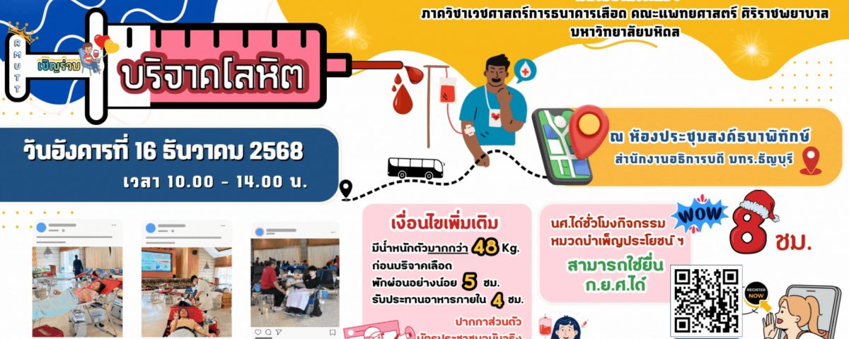 เชิญชวนบริจาคโลหิตกับภาควิชาเวชศาสตร์การธนาคารเลือด คณะแพทย์ศาสตร์ศิริราชพยาบาล มหาวิทยาลัยมหิดล