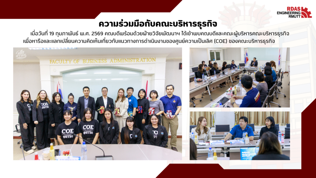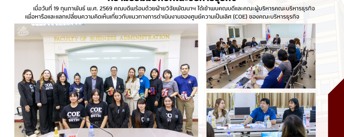 เมื่อวันที่ 19 กุมภาพันธ์ พ.ศ. 2569 คณบดีพร้อมด้วยฝ่ายวิจัยพัฒนาฯ ได้เข้าพบคณบดีและคณะผู้บริหารคณะบริหารธุรกิจ