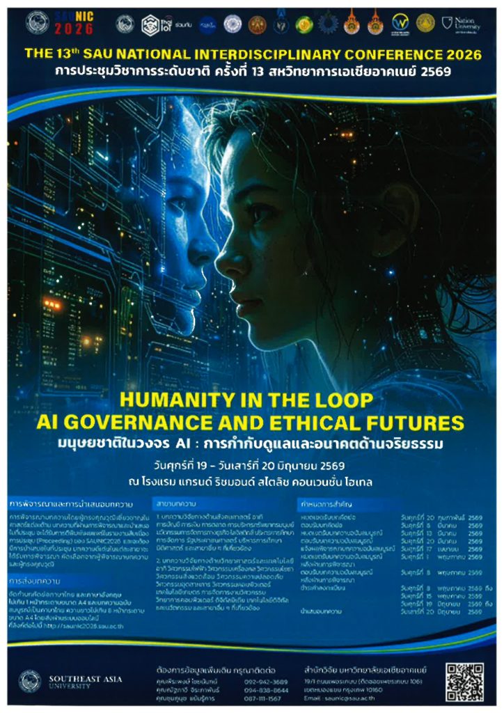 ขอเชิญบุคลากรในหน่วยงานของท่าน เข้าร่วมการประชุมวิชาการระดับชาติ สหวิทยาการเอเชียอาคเนย์ 2569 ครั้งที่ 13